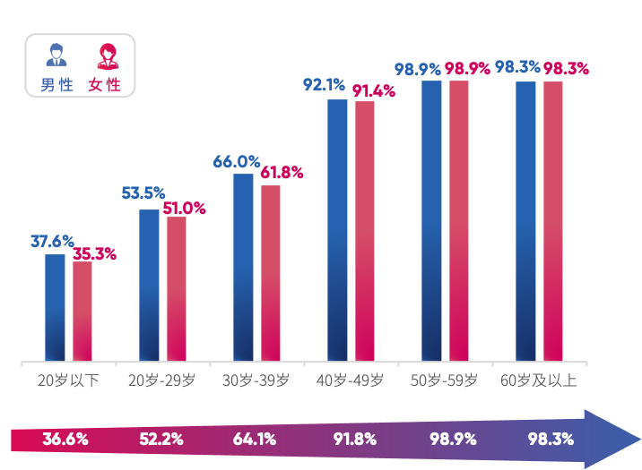随着年龄的增长,眼底异常检出率逐渐升高,特别是40岁及以上人群,眼底异常检出率迅速攀升至90%以上,每10人中就有超9人存在异常,其中,视网膜血管异常作为头号眼底异常,40岁及以上人群的检出率更是40岁以下人群的9.3倍。