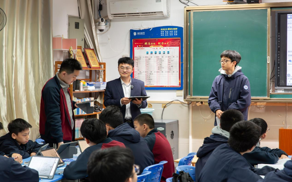 “小老师制”让学生从课堂“旁观者”变“主角”,实现从被动接受到主动输出的蜕变。学生章哲彬坦言,从最初上台慌张到如今从容分享,“小老师”经历让他收获自信,课前预习整理、课上思维碰撞,让知识理解更深刻;学生高静雯表示,课堂自主思考时间增多,表达和小组协作能力显著提升。小组还会鼓励内向、学习积极性不高的同学上台,形成互助氛围,学校更搭建 “超级演说家” 课程、专项培训、风采大赛等培养体系,不少学生综合能力与学业成绩实现双重突破。