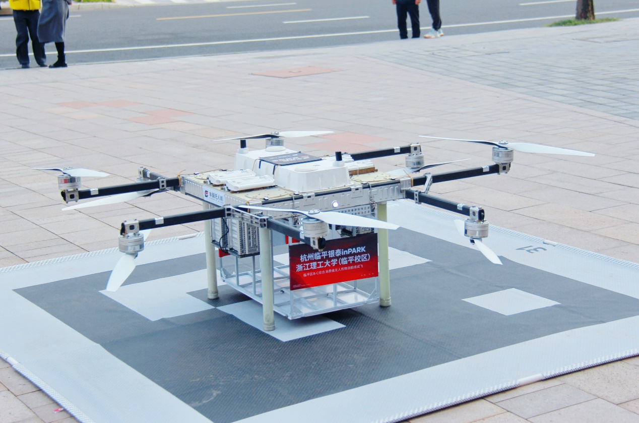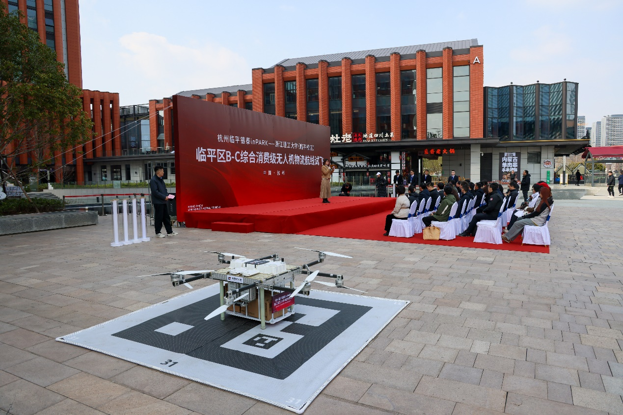 聚焦浙江理工大学临平校区8000名师生“商圈远、选择少”的难题,在杭州市低空专班、杭州低空产业发展有限公司、临平区低空专班的指导下,临平新城精准匹配校区需求与杭州临平银泰inPARK新商业体的发展诉求,正式推出外卖物流综合航线。