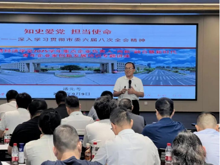 开班仪式结束后,台州开放大学正校级调研员潘先考为学员讲授开班第一课——《知史爱党 担当使命》,鼓励学员企业将党建工作与企业经营管理深度融合,传承红色基因,厚植家国情怀,激发企业家的爱国热情和社会责任感。
