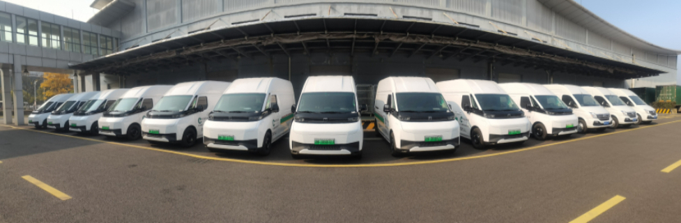新能源车停靠在物流园区。
