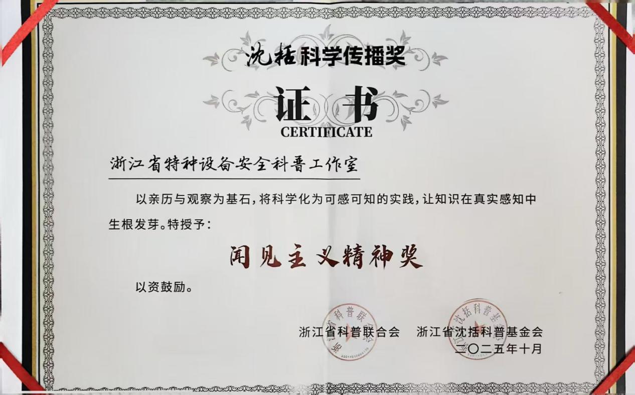据悉,“沈括科学传播奖”的设立是为推动“凡人驭AI”的创新实践,浙江省特科院特种设备安全科普工作室获“闻见主义精神奖”,是浙江省市场监管系统、也是行业内唯一获奖单位。近年来,浙江省特科院创新打造“流动式”科普课堂,一场场有趣动听的故事和手工体验,用互动体验式教学把复杂的科技理念让科学变得“看得见、摸得着”,将特种设备安全理念深植于公众日常。