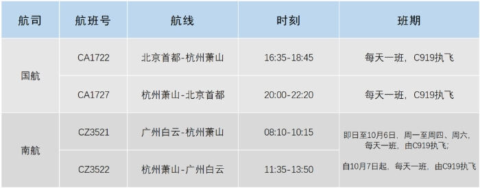 新增两条C919国产大飞机航线
