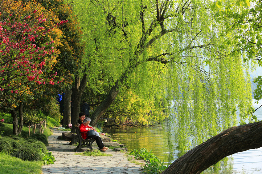 柳浪闻莺得名于成片的柳树和林中的黄莺,只是现在似乎见不到黄莺的踪影了。南宋时,这里曾是京城最大的御花园,称聚景园。