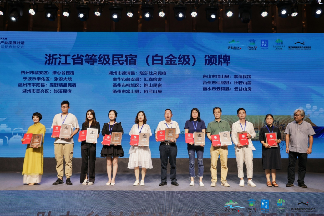 新一批浙江省白金宿级和金宿级等级民宿也在活动中发布并颁牌。据介绍,早在2017年,浙江省发布了《民宿基本要求与评价》,明确了浙江省民宿地方标准,在定义、基本要求、环境设施、管理服务、评价原则、等级划分条件等方面对民宿提出了要求。而后,一年一度的等级民宿评定所评选出的白金宿、金宿、银宿,成为浙江民宿的靓丽代表,不断推动着浙江民宿产业的高质量发展。去年年底,经过省文化和旅游厅组织的各地报送、集中评定、现场评定、抽查暗访等多个环节,最终评定产生了潭心谷民宿、张家大院、霂野精品民宿等白金宿级民宿11家,语自在老杭州墙门文化民宿、集盒里美学民宿、月笼溪沙民宿等金宿级民宿22家。