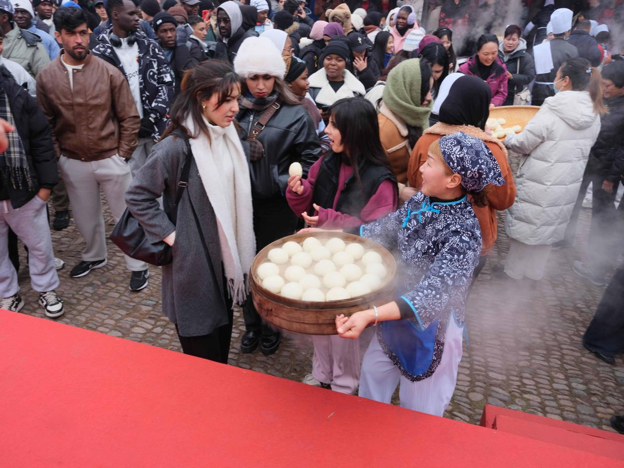 活动现场,蒸腾的热气裹挟着香甜扑面而来,嘉宾们为刚出炉的馒头点红,一抹抹喜庆的朱红为这份传统年味添上点睛之笔。在稠门村红色食堂,留学生们围在案板前,在当地老师的指导下亲手体验和面、揉团、造型。从掌握面团发酵的微妙平衡,到感受手工揉制的力度技巧,学生们在一捏一揉间,触摸到中国传统饮食文化的精髓。