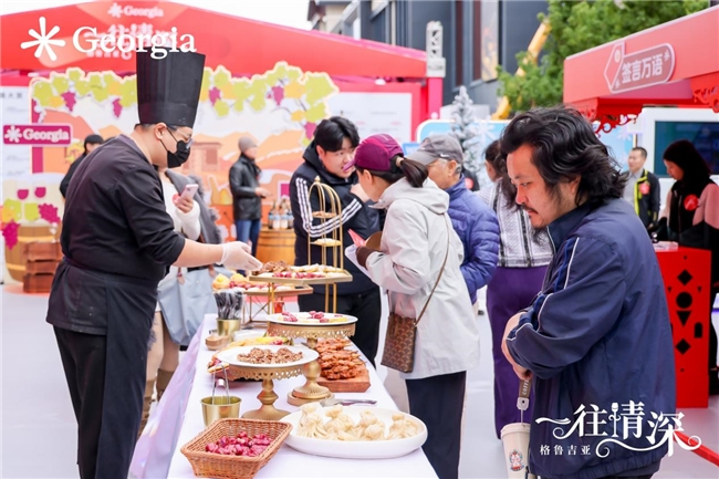 此外,活动现场飘着金卡利(牛肉汤包)、戈兹那基(蜂蜜核桃糖)、姆次瓦迪(格鲁吉亚烤串 )等格鲁吉亚特色美食的浓郁香气,搭配当地红酒,构成味蕾上的异国之旅。